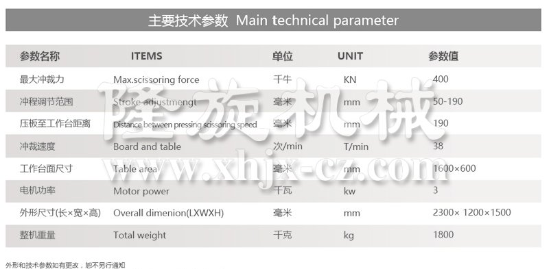 XH-XLJ400型液壓平面下料機主要適用于輕工系統的皮革,塑料橡膠、制鞋、服裝、制盒等行業(yè)的不同寬度及形狀的原材料裁切成型。同時(shí)主要用于切割集裝袋上所需要的相關(guān)部件,如涂完膜之后的底,蓋布上的進(jìn)、出料口,拉筋袋拉筋部件的橢圓形進(jìn)料口。并可將裁剪后剩下的涂膜布邊角料進(jìn)行再次裁剪利用,有效的利用布料。