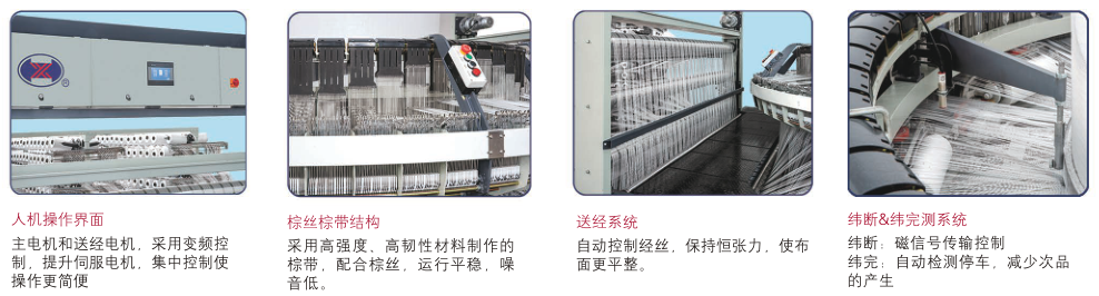 ●自動(dòng)控制經(jīng)絲,保持恒張力,使布面更平整;