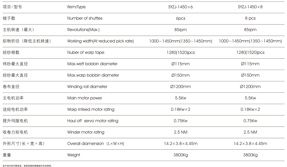 產(chǎn)品概述:產(chǎn)品特點(diǎn)●大凸輪結構,具有高效,節能,低噪音等特點(diǎn);●梭子采用滾輪形式,無(wú)需潤滑,減少污染;●人機操作界面:功能強大,集中控制,操作更簡(jiǎn)便;●自動(dòng)控制經(jīng)絲,保持恒張力,使布面更平整;●適用于集裝袋、篷布等。產(chǎn)品尺寸:技術(shù)參數: